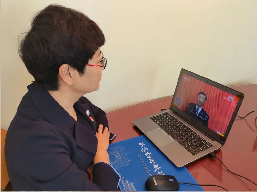 10月16日上午,举国期待、举世瞩目的中国共产党第二十次全国代表大会隆重开幕。伟德体育机关全体党员干部和离退休老同志通过广播、电视、网络等方式收听收看了党的二十大开幕会,认真聆听了习近平总书记代表第十九届中央委员会向大会作的工作报告。