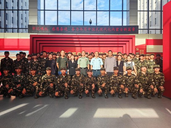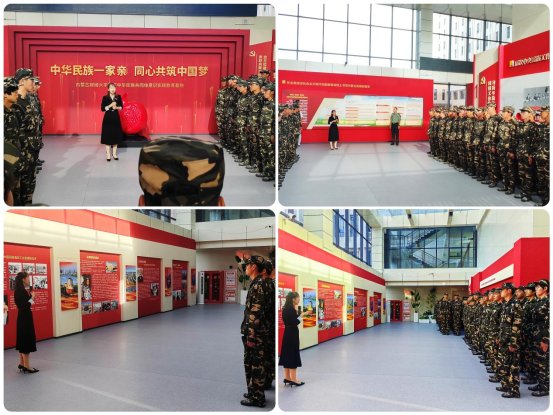 近日,在内蒙古自治区第41个全区民族团结进步活动月来临之际,自治区地方语言文字研究应用中心党支部联合呼和浩特市赛罕区人民武装部党支部、内蒙古日报社草原云全媒体传播指挥中心党支部、内蒙古广播电视台译制中心党支部、内蒙古画报社党支部等“石榴籽e起来 织密民族团结之网”联学共建支部,组织正在接受军训的内蒙古机电职业技术学院大一新生代表100余人走进内蒙古财经大学铸牢中华民族共同体意识实践教育基地,上了一堂生动的铸牢中华民族共同体意识课。