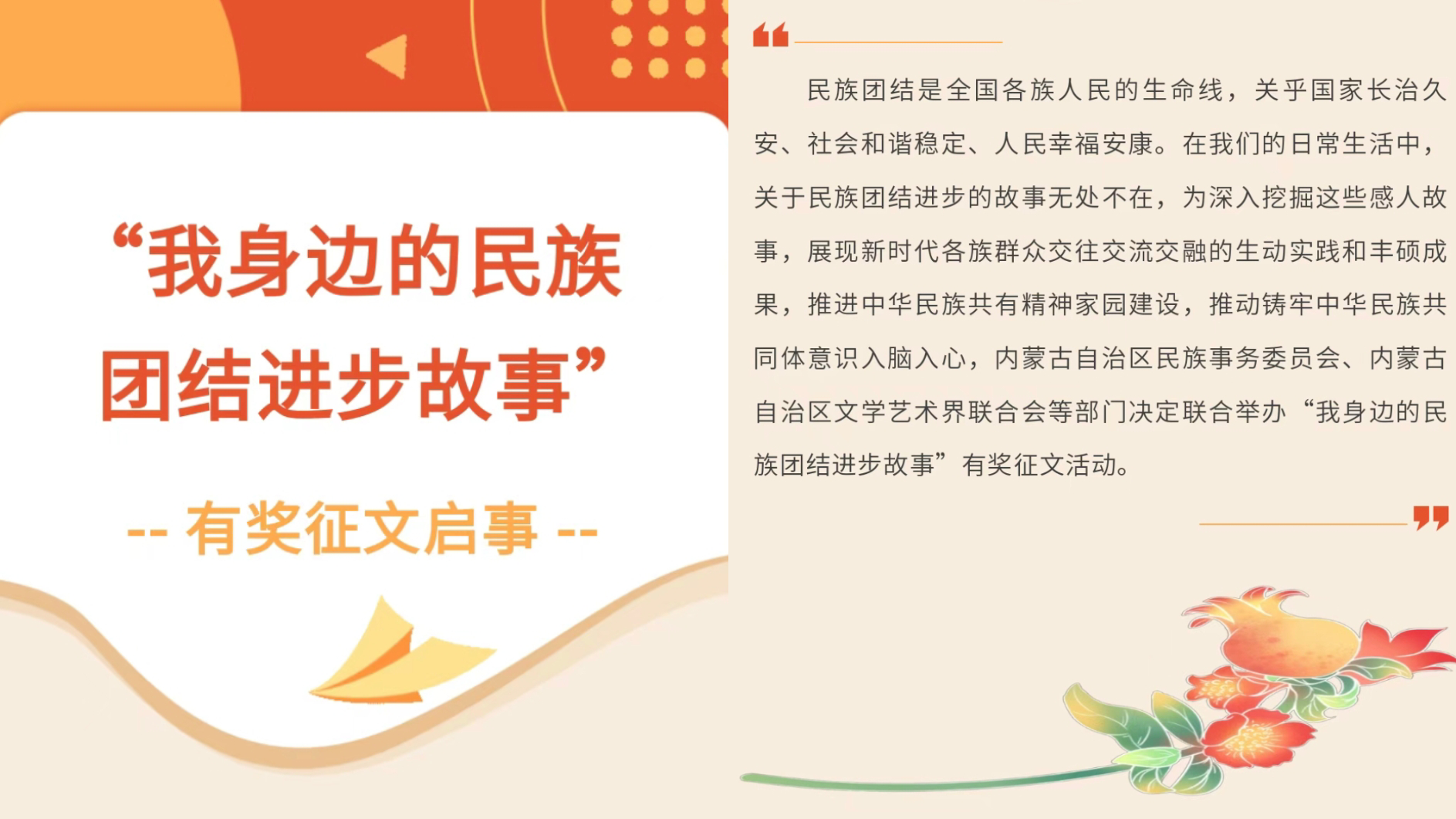 7月,同内蒙古文联等多家单位联合举办“我身边的民族团结进步故事”有奖征文活动,吸引约1100人参与,鼓励群众自己书写民族团结进步故事