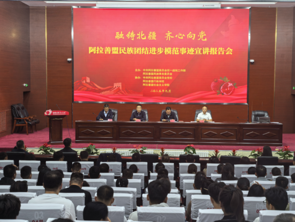 宣传教育是铸牢中华民族共同体意识的重要抓手。活动月期间,阿拉善盟围绕铸牢中华民族共同体意识工作主线,构建“线上+线下”“集中+分散”的宣传矩阵,让民族团结进步理念浸润人心。召开阿拉善盟第十一次民族团结进步表彰大会暨建设铸牢中华民族共同体意识示范盟工作推进会,对40个模范集体和59名模范个人进行表彰,进一步动员全盟上下为办好两件大事、“建设一个示范盟”凝聚共识、团结奋斗。在盟直单位、各旗区,阿拉善盟民族团结进步模范事迹宣讲报告会陆续开讲,民族团结进步模范代表用通俗易懂、生动质朴的语言,深情讲述了民族团结进步的先进事迹,生动展现了全盟民族团结进步事业的丰硕成果。全区“科普边疆行”活动走进阿拉善盟,以“科普赋能兴边富民,推进中华民族共同体建设”为主题,举行了“送法入边疆”“喝楚茶一家亲”民营企业进边疆等活动,把弘扬新时代科学精神和科学家精神有机融入新时代兴边富民行动中。在阿拉善职业技术学院和阿左旗安达社区,“感党恩、听党话、跟党走”石榴花开映北疆同心共筑中国梦民族团结进步故事分享会,“政策宣讲+故事分享+问答互动”等形式为高校师生、社区群众带来了一堂生动的“大思政课”,进一步将民族团结的种子播撒在各族青年学子和社区群众心中,凝聚起“中华民族一家亲”的共识。额济纳旗举办的“北疆同心筑国防民族团结共奋进”巡回宣讲活动走进企业,在阿拉善高新区、示范区,辖区企事业单位的100余名干部职工齐聚一堂,在推进北疆文化提升行动专题宣讲中进一步凝聚思想共识、激发奋进力量。