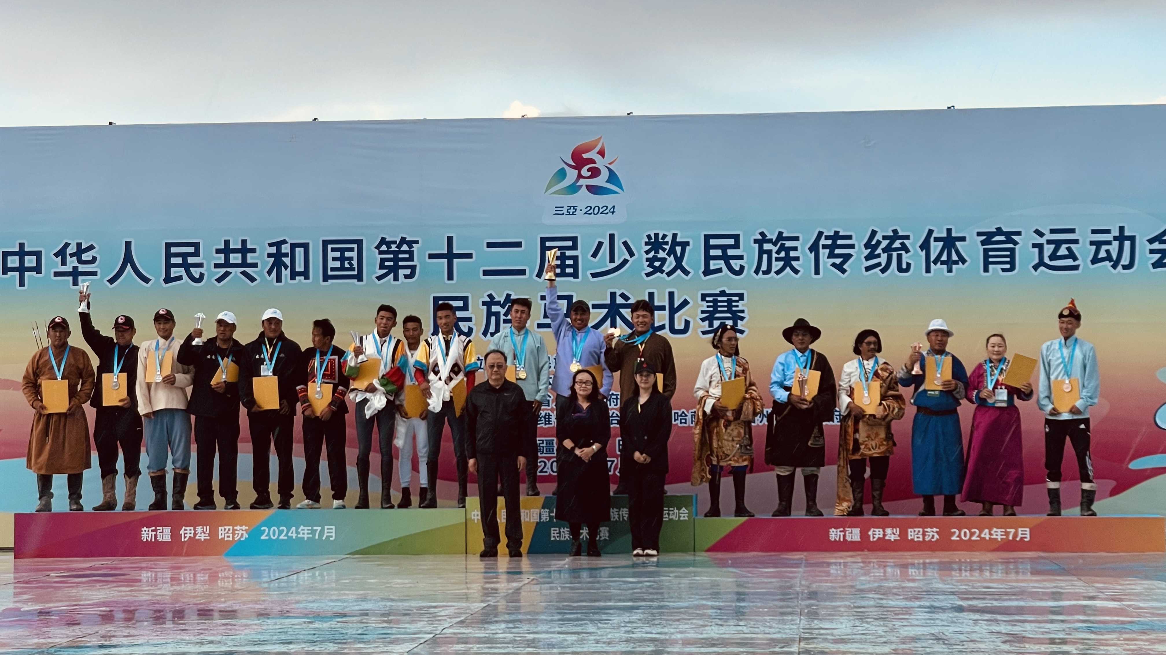我区代表团在第十二届全国少数民族传统体育运动会上勇夺跑马射箭项目双一等奖, 7月10日,在刚刚结束的第十二届全国少数民族传统体育运动会跑马射箭项目中,内蒙古代表团凭借出色的表现,成功摘得个人和三人团体双一等奖,彰显了我区在民族传统体育项目上的非凡实力与卓越风采。赛场上,我区骑手们身姿矫健,策马疾驰,箭矢如飞,完美诠释了马背上的速度与力量之美。他们与赛马之间默契十足,每一次精准的射箭都是对技艺与默契的极致追求,凝聚了运动员们无数次训练的汗水与努力。经过两轮激烈的角逐,我区代表团运动员宝民以11分的成绩,在65名选手中脱颖而出夺得一等奖。同时,我区代表团运动员宝民、特日格勒、包茫来以31分的总成绩,获得三人团体一等奖,赢得了现场观众热烈掌声与欢呼,这份荣耀实至名归。此外,在二三等奖中我区运动员获得二等奖1名,三等奖4名。