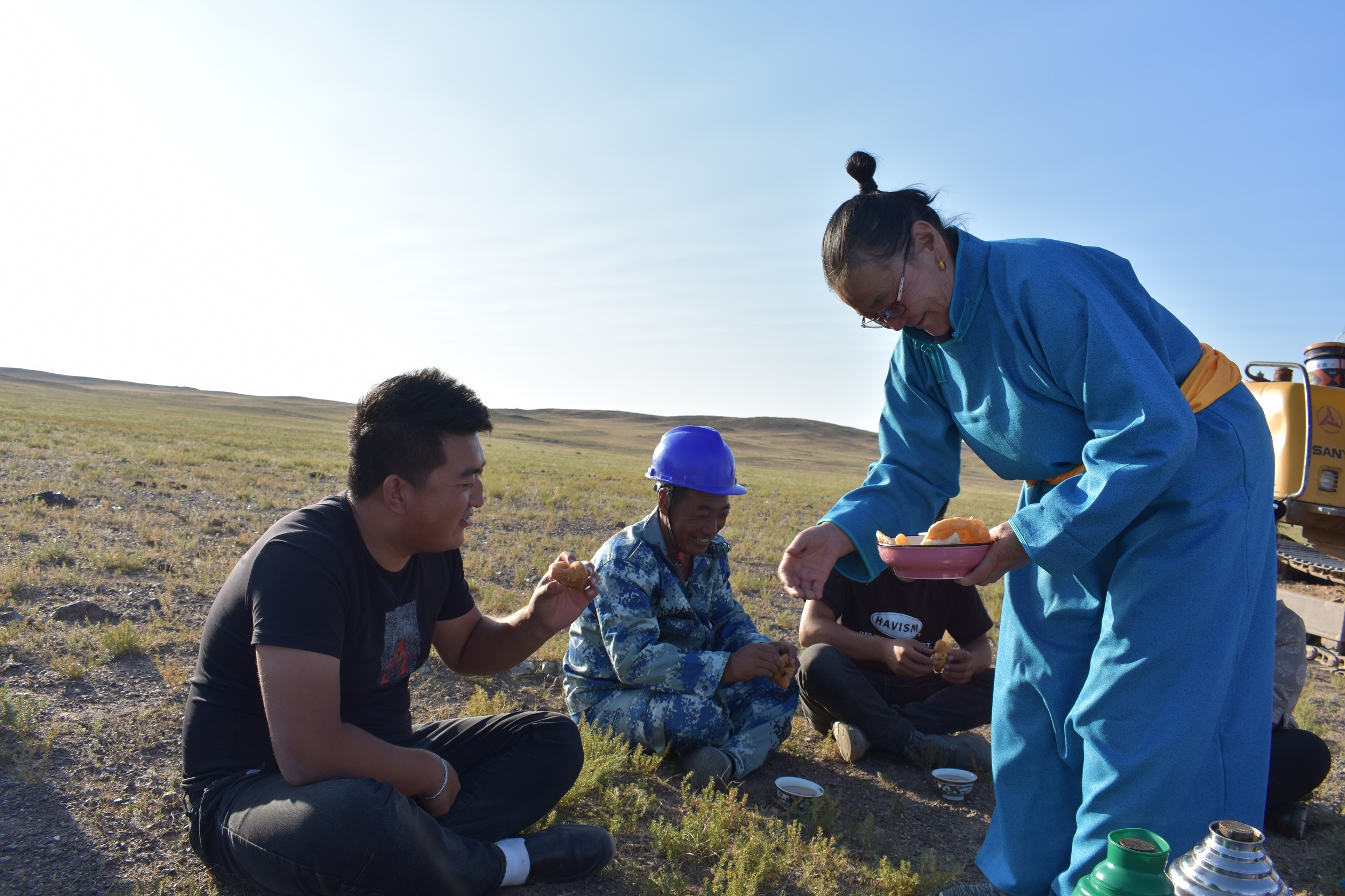 牧民为施工人员送奶茶和食物。(摄影:赵楠)