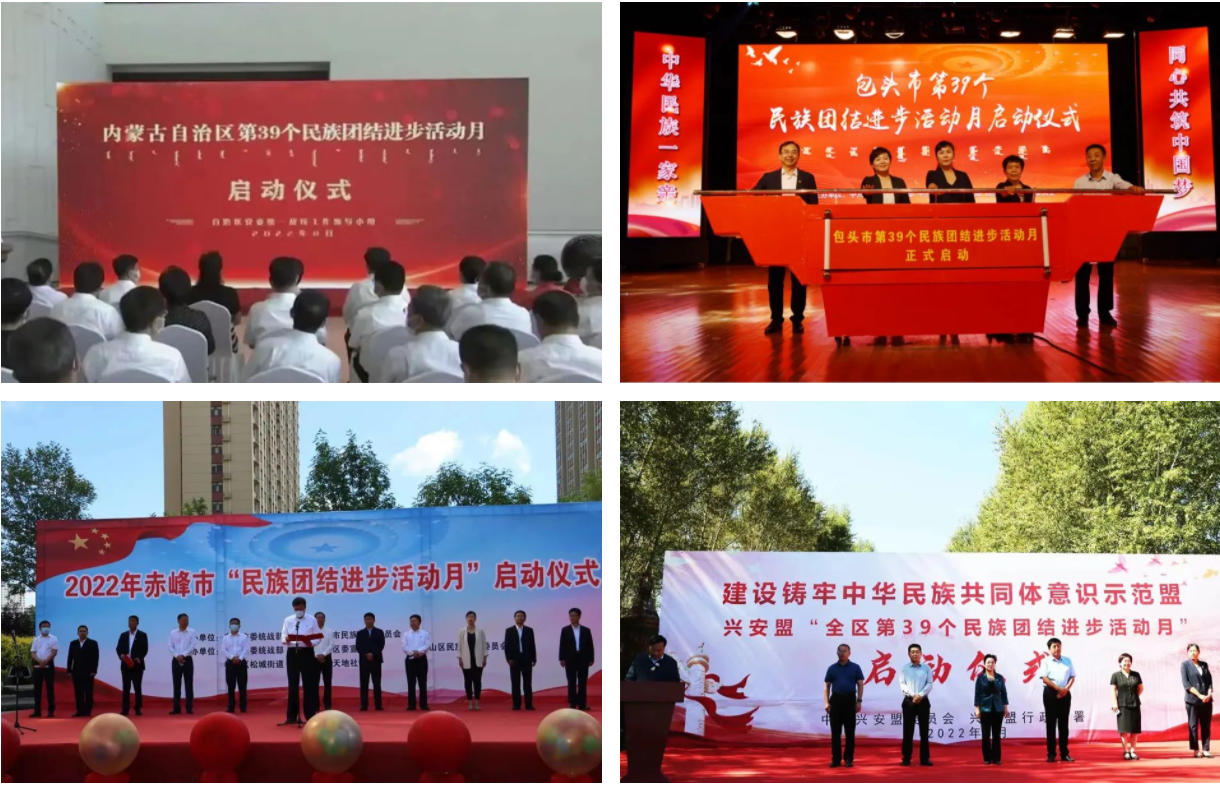自治区党委统战部、宣传部、伟德体育官网印发《2022年全区民族团结进步活动月工作方案》,对活动月工作进行全面部署,各盟市印发了本地区活动月工作方案,为活动月各项任务落地落实提供保障。自治区举办了全区民族团结进步活动月启动仪式,各盟市陆续召开启动仪式,进一步提升了民族团结进步活动月的影响力和知晓度。各地区强化对活动月工作推进的督促落实,压实压紧工作职责,确保活动月工作取得实效。