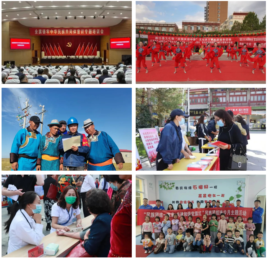 三是坚持服务各族群众,引导各族群众听党话、感党恩、跟党走。各地区结合实际,组织各族群众开展丰收节、中秋节等“我们的节日”一系列群众性活动1000多场次,举办“同心向未来·奋进新时代”喜迎二十大剪纸作品展,基层一线借助调频广播和村嘎查大喇叭,每日分时段推送中华优秀传统文化和红色经典故事,讲好群众身边民族团结进步故事,丰富了各族群众的精神生活。集中开展送医送戏送法下乡、创业能力培训、爱心捐助、结对帮扶等为民实事10000余件,接受各族群众政策法律咨询15万人次,为各族群众送去了温暖,各族群众的获得感、幸福感、安全感进一步增强。