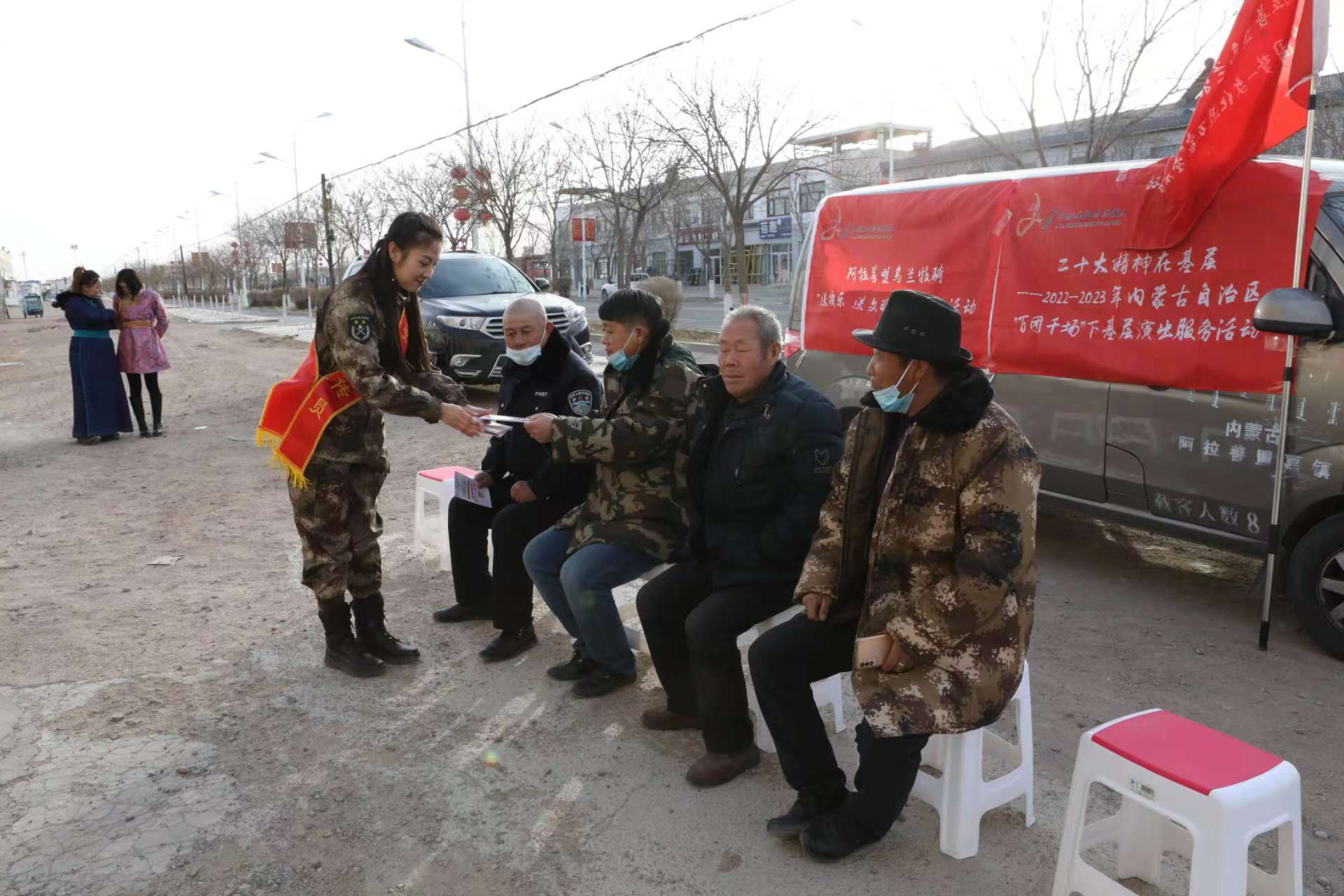 深入嘎查为农牧民送去欢乐和文明。(来源:中共阿拉善盟委员会宣传部)