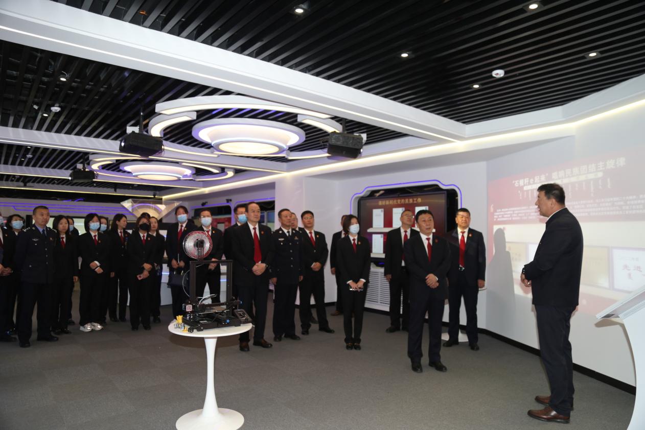 5月10日,呼和浩特铁路运输中级法院党组书记、院长刘文华同志带队,中院全体干警30余人到自治区地方语言文字研究应用中心实地参观调研党建工作,并就深化主题教育及品牌党建工作进行了交流座谈。