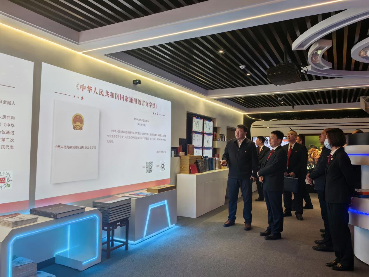 大家一同参观了地方语言文字研究应用中心党建阵地、“石榴籽e起来”民族工作数字化展厅,围绕“民族政策宣传月”活动主题“铸牢中华民族共同体意识,全方位建设‘模范自治区’”共同学习了民族政策和法律法规,一同重温了习近平总书记关于“民族团结说到底是人与人的团结。船的力量在帆上,人的力量在心上。做民族团结重在交心,要将心比心、以心换心”等经典论述。
