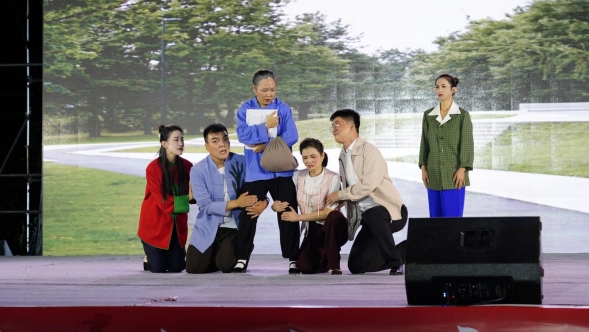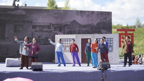 兴和县乌兰牧骑在河北康保演出《军民鱼水情》,以东路二人台形式架起促进各民族交往交流交融的文化桥梁(由兴和县伟德体育提供)
