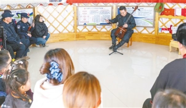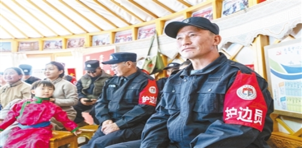 护边员们在观看乌兰牧骑的演出。 新华社记者 马金瑞摄