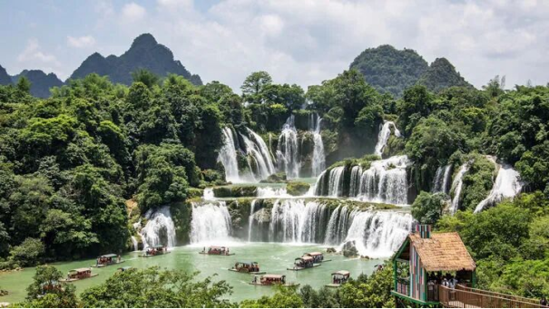 ▲2025年6月1日,游客在中越德天(板约)瀑布跨境旅游合作区游览。新华社发赵京武 摄